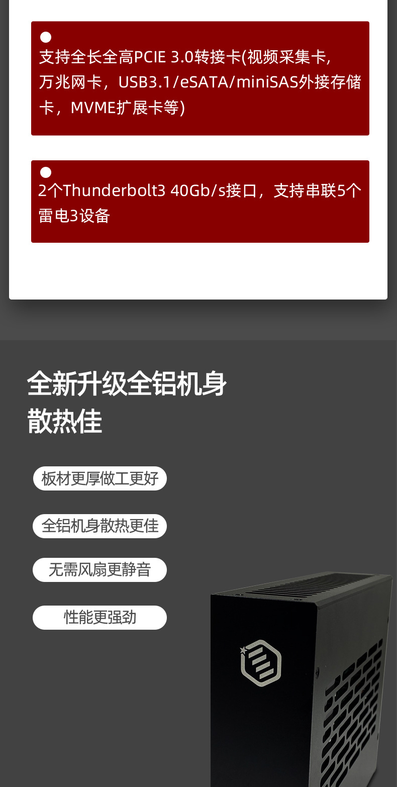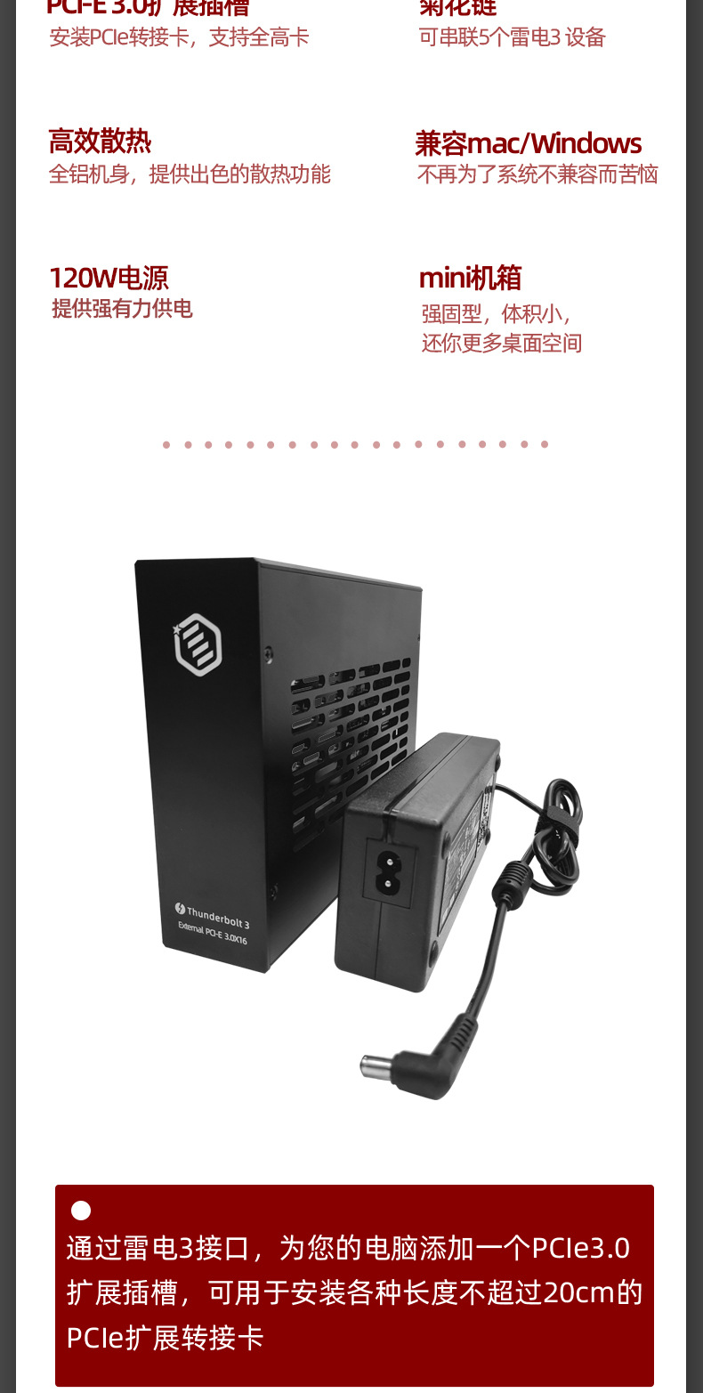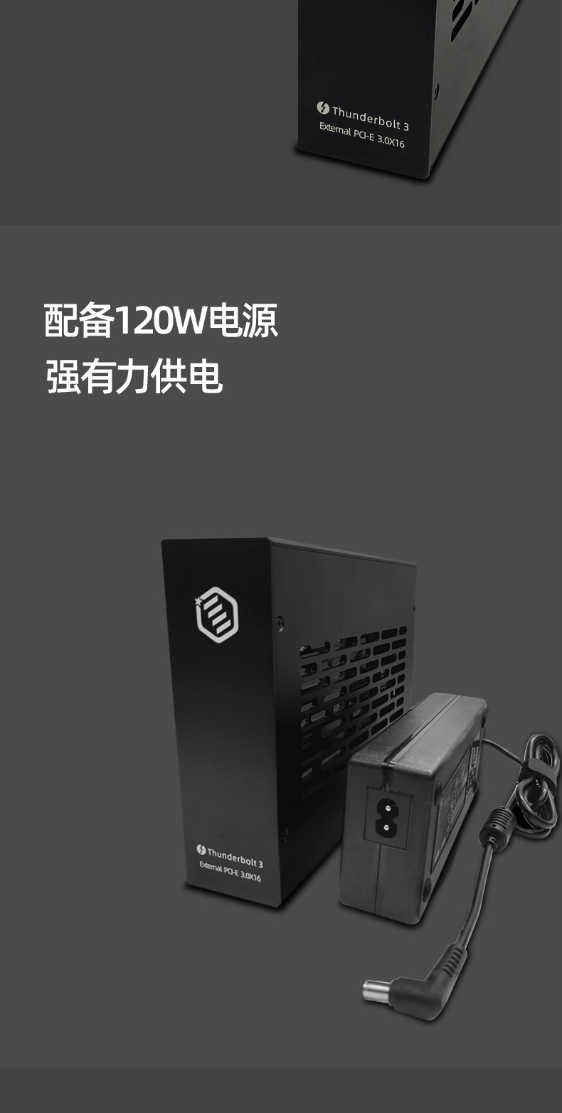 Thunderbolt3雷电3转PCI-E 3.0扩展箱雷电扩展坞、两个雷电3接口,120W电源,支持多种转接卡